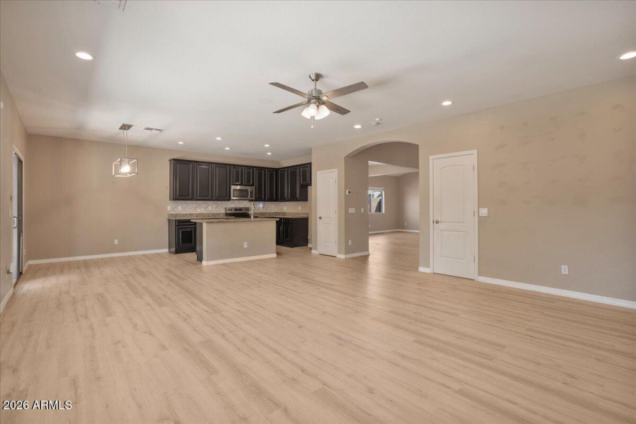 This beautiful residence in Camelback Ranch is situated on a spacious corner lot and includes a RV gate. Youll absolutely adore the expansive, low-maintenance backyard! Upon entering, youll be greeted by dramatic, soaring vaulted ceilings and large oversized windows. The generous formal living and dining rooms create a welcoming atmosphere, complemented by a staircase that leads to the second floor. The open-concept kitchen is truly a highlight, showcasing:A substantial island elegant granite countertops, ample cabinetry with 42 upper cabinets, a pantry, a cozy breakfast nook that seamlessly connects to the main living area. An additional dining area provides the perfect setting for hosting. Spacious living quarters!With five bedrooms, three bathrooms, plus a movie room and loft, this 3,026 sqft home has room for everyone. One bedroom and a full bath are conveniently located on the ground floor. The primary bedroom features a private balcony, while the two-car garage includes a 2-foot extension. Each room is equipped with ceiling fans, and theres even storage under the stairs, often referred to as the Harry Potter closet.Additional FeaturesThis home is equipped with:A new TRANE A/C unit (2020)SunshadesA mini-split system in the garage (conveys as-is)Exterior painted in 2020Nest thermostatsLocated in a fantastic area of Camelback Ranch, youll enjoy easy access to shopping, nightlife, and freeway connections.
