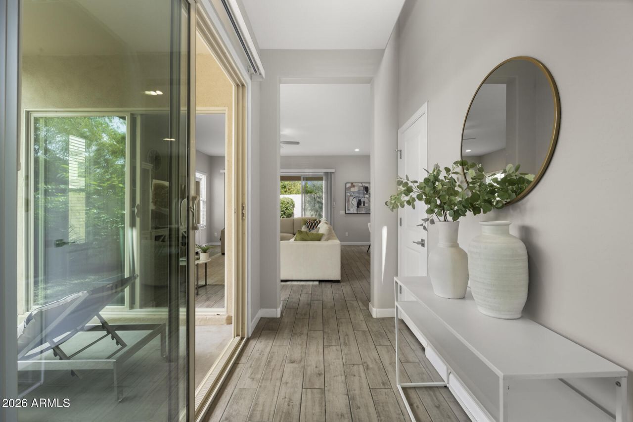 Located on a premium corner lot in the desirable gated Paradise Ridge community, this home sits in one of North Phoenixs most convenient locations. Enjoy Scottsdale adjacency living while paying Phoenix taxes. With three bedrooms, a versatile loft, and multiple outdoor living spaces, the home combines thoughtful design with everyday functionality.The corner lot provides additional privacy and allows natural sunlight to pour into the home from multiple directions, creating a warm and welcoming atmosphere throughout. Inside, the open floor plan connects the kitchen seamlessly to the main family and living area, making the space ideal for both entertaining and everyday living. The kitchen offers generous counter space and cabinetry while keeping the cook connected to the heart of the home. Outdoor living is just as inviting. A charming side patio features a small herb garden, perfect for morning coffee or quiet evenings. The backyard has been upgraded with turf and added landscaping, creating a low maintenance outdoor space that is ideal for relaxing, entertaining, or play. Upstairs, the spacious primary suite serves as a private retreat, complete with a large bathroom and walk in closet. Two additional bedrooms are nicely sized and filled with natural light, while the secondary bathroom offers dual vanities for added convenience. The loft provides flexible space that can easily function as a home office, playroom, or media area. The laundry room is conveniently located upstairs with brand new Samsung washer & dryer. The location is truly exceptional. Right across from Mayo Clinic, premier shopping, and popular restaurants like The Henry and Buck and Rider, everything you need is close by and within walking distance to. Lifetime Fitness is around the corner, and outdoor enthusiasts will appreciate easy access to trails that connect to Reach 11 for running, biking, or walking. The community also offers a pool and playground area, making it a great setting for both families and young professionals. Peaceful yet connected, this home offers a private oasis right in the middle of everything North Phoenix has to offer.