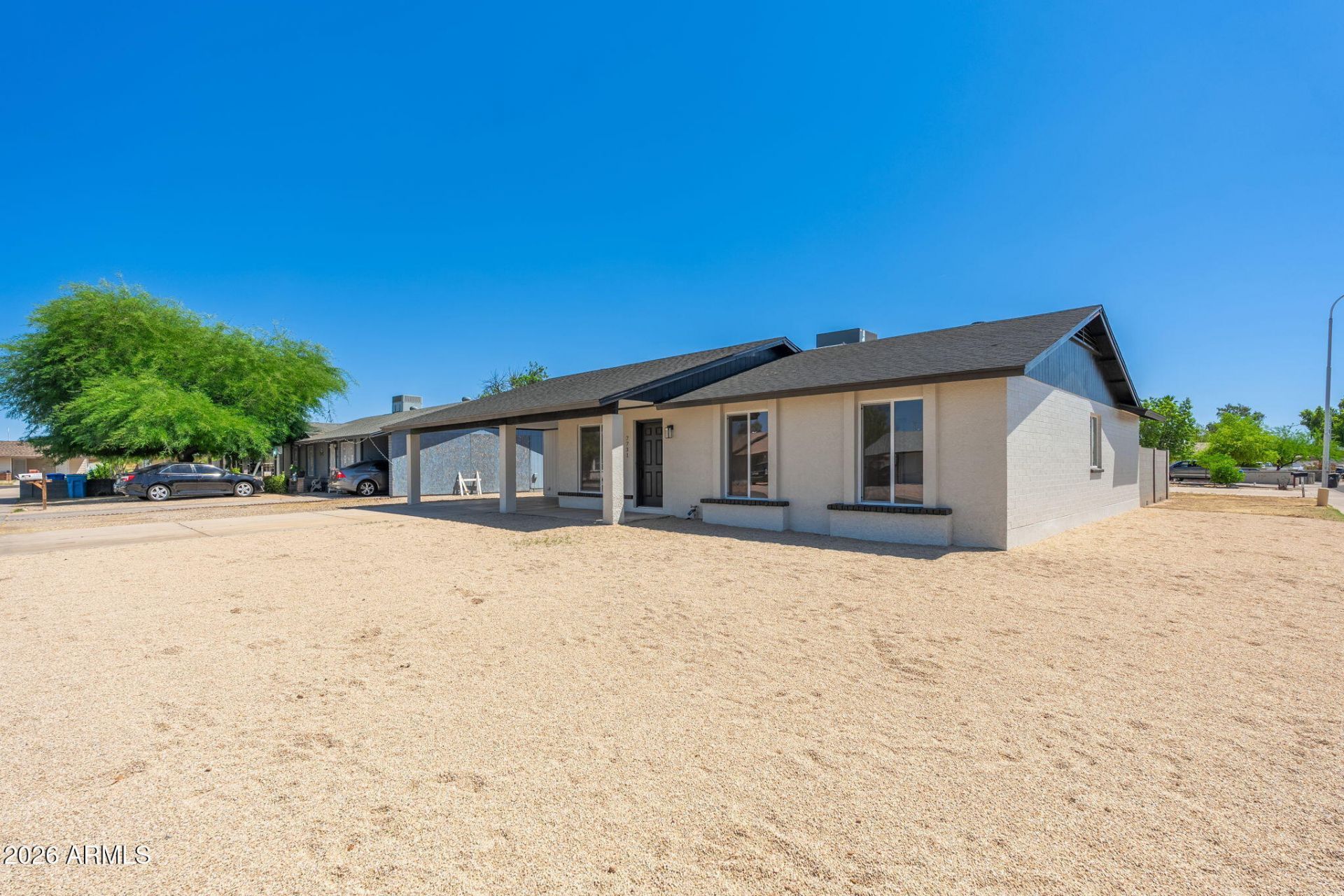 Beautifully remodeled single-story home featuring contemporary design throughout along with a BRAND NEW ROOF and WINDOWS. The kitchen showcases stainless steel appliances, two-tone shaker cabinetry, quartz countertops, tile backsplash and breakfast bar. Recessed lighting, vinyl wood flooring paired with upgraded carpet creates a bright, open flow across the home. The bathrooms are thoughtfully updated with premium shower systems, custom vanities, framed mirrors, and designer tile niches. Step outside to a covered patio overlooking a spacious backyard, offering endless possibilities to create your ideal outdoor retreat.