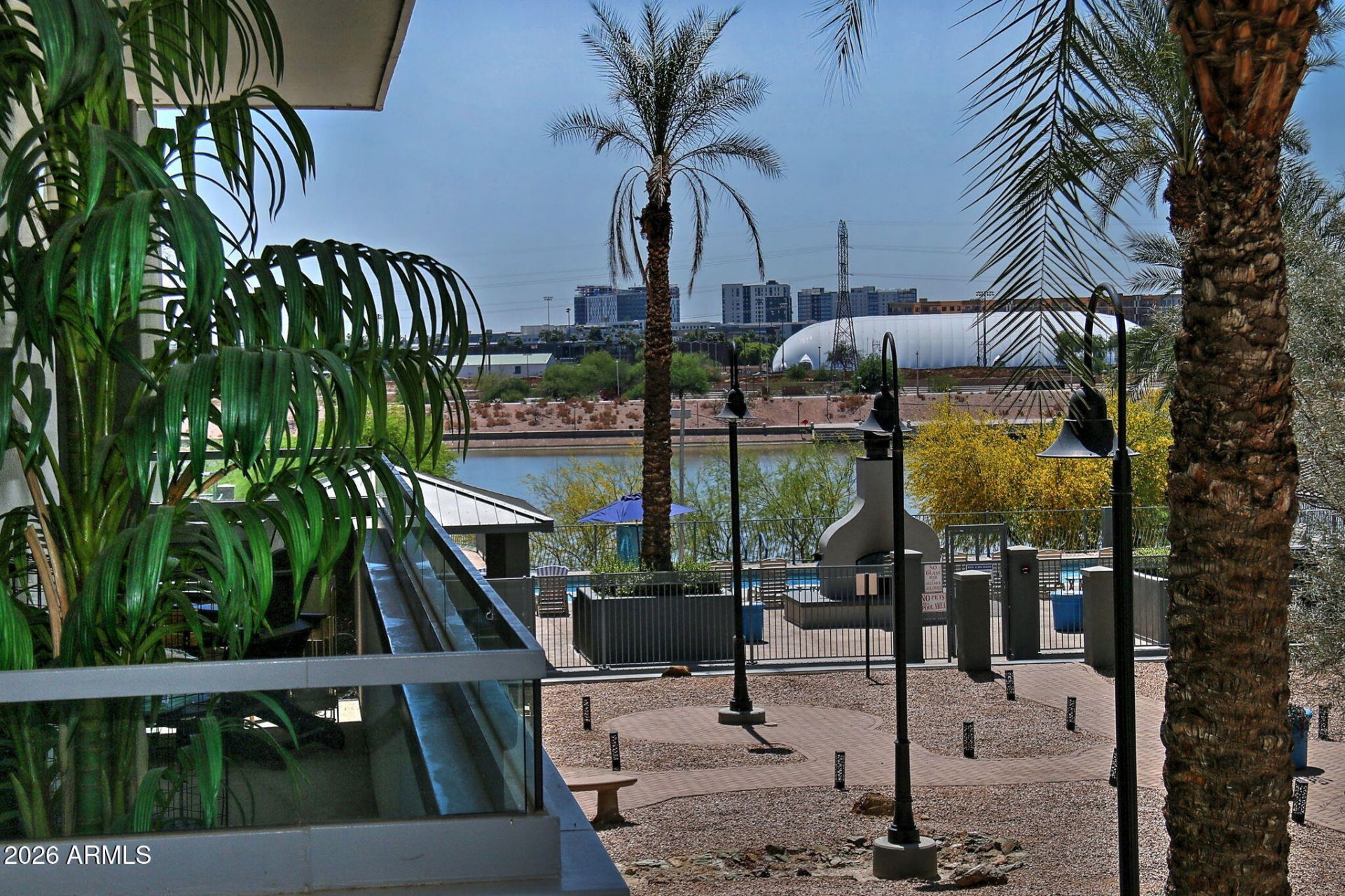 Enjoy lakefront views, luxury living with this updated condo in the coveted lakeside community of North Shore. This 2 Bed, 2 Bath condo offers breathtaking views of Tempe Town Lake, a new HVAC unit in 2025 and remodeled bathrooms. The open floor plan has been freshly painted, granite countertops, and gorgeous new showers in both bathrooms. The primary suite is a true retreat with ample space, offers a large bedroom, private patio access, ensuite bathroom with double vanity, newly redone walk-in shower with custom glass door, a luxurious soaking tub and a walk-in closet. Second bedroom has a gorgeous bathroom with new tile shower. The condo patio offers views of the pool, the lake and a gas fireplace to enjoy. This Tempe waterfront community offers secure fob access, front desk personnel Monday-Friday 9-5pm, a large fitness center, a resort style pool/spa overlooking Tempe Town Lake- pool area offers a large fireplace, ramadas, and BBQs, access to Tempe Town Lake for Biking,Walking, Paddle Boarding. North Shore is close to shopping, ASU Football Stadium, ASU Campus, and all of downtown Tempes amenities. Starbucks, In-n-Out and restaurants are walking distance. HOA includes water, gas, exterior maintenance, pool maintenance, security, secure gated garage parking and guest parking. This condo has bike/storage in the parking garage as well as two reserved parking spots.